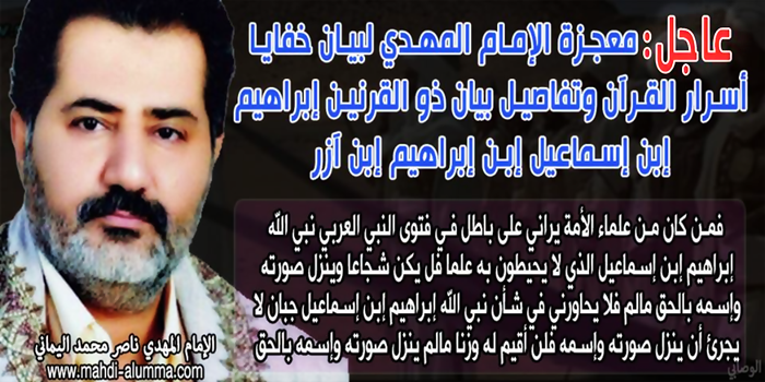 معجزة الإمام المهدي لبيان خفايا أسرار القرآن وتفاصيل بيان ذي القرنين إبراهيم بن إسماعيل بن إبراهيم بن آزر..
