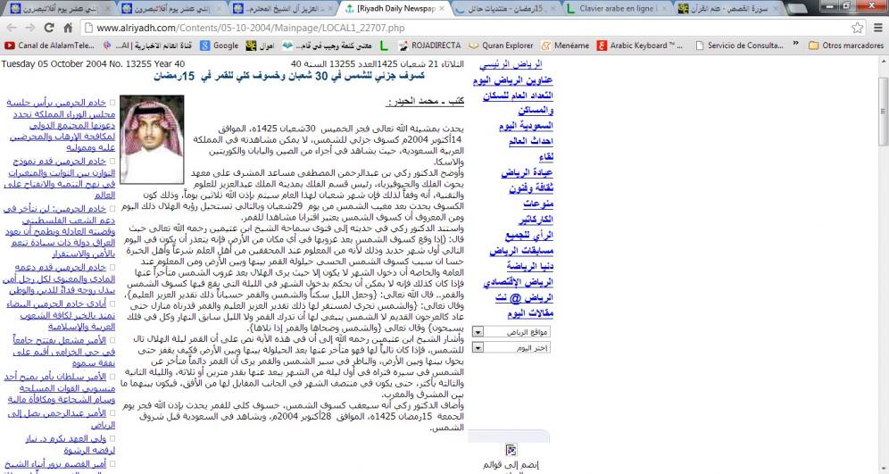 وفيما يلي بيان الدكتور زكي بن عبدالرحمن المصطفى مساعد المشرف على معهد بحوث الفلك والجيوفيزياء، رئيس قسم الفلك بمدينة الملك عبدالعزيز للعلوم والتقنية، في جريدة الرياض على الرابط التالي: وأرجو من الوصابي أو غيره من الأنصار السابقين الأخيار أن يقوم بتصوير بيانه عاجلاً كما هو في جريدة الرياض على الرابط التالي من قبل أن يُذهبوه: